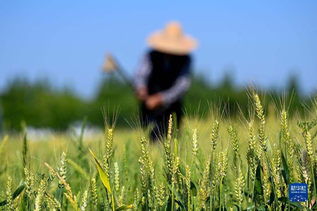 5月5日,村民在江苏省昆山市锦溪镇长云村田间劳作。