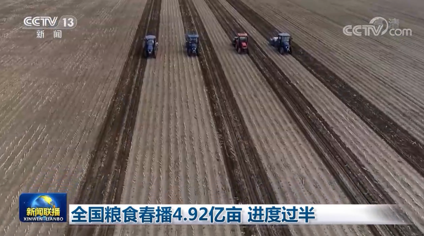 央视网消息(新闻联播):眼下,粮食主产区正抓住农时,抢墒播种。全国已春播粮食4.92亿亩,完成意向面积超过一半,进度快于去年同期。
