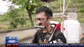 罗应星身上的这套乐器组合,能敲打出军鼓、低音鼓、中镲、大镲的声音,再加上手里的吉他和嘴边的口琴,一个人就能完成一个乐队的表演,这是他多年来一点点摸索练习才掌握的本领。原本,音乐对于罗应星来说,可能如大多数人一样,也只是一个爱好,生在大山的他,读书考学才是更切实的出路,但13岁那年,一次意外,彻底改变了他的人生。
