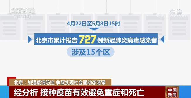 发布会上,相关负责人还介绍,4月22日—5月8日15时,北京市累计报告727例新冠肺炎病毒感染者。经过分析,接种疫苗是预防感染新冠病毒后导致重症、危重症和死亡的有效措施。