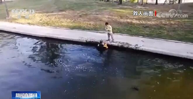 孩子家长 李先生:老人从大约2米高的水台跳下来营救我的孩子,老人年龄也比较大,对这个事情我表示非常感谢,同时也感谢周围这些热心的群众来帮助我的孩子。