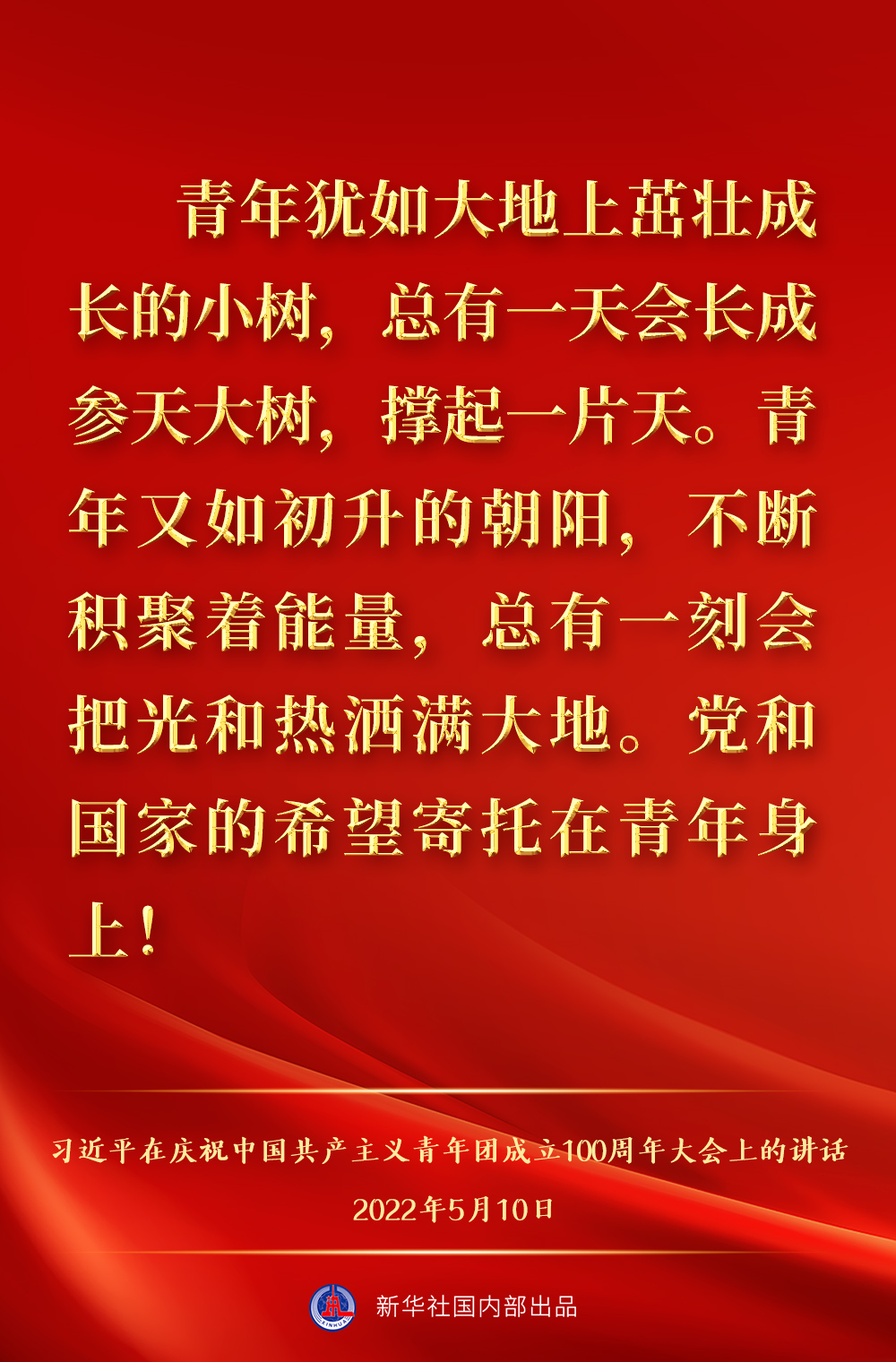 金句来了!习近平在庆祝中国共产主义青年团成立100周年大会上的讲话