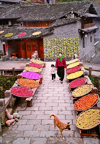 温州市永嘉县楠溪江晒秋,回味旧时光。
