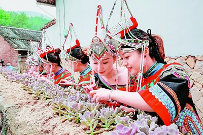 丽水市景宁县东坑镇深垟村村民在打理多肉植物。村里种植的400多个品种近70万盆多肉植物,热销江、浙、沪等地区,成为村民致富的新渠道。 景宁县委宣传部供图