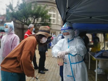 清晨六点居委会报道、280户人家逐一上门通知、一上午鲜有歇脚的机会……这是上海沪剧院演奏团党支部书记洪立勇、上海沪剧院副院长姚慧在核酸检测日的工作日常。自四月初以来,洪立勇的志愿者生涯已经一月有余。在核酸检测现场,他不仅要提醒居民们排队时保持好秩序,还要在采样结束后传递整个小区的样本。近1500份样本,洪立勇要分好几次拿,东西虽然不沉,但他都格外小心。姚慧也是小区中的第一批志愿者,一开始志愿者只有寥寥十余位,现在则有近200位。