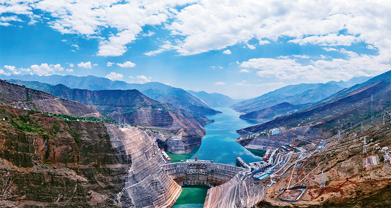 金沙江白鹤滩水电站是实施“西电东送”的国家重大工程,是当今世界在建规模最大、技术难度最高的水电工程。自2021年6月28日首批机组投产发电以来,白鹤滩水电站累计发电量已达256亿千瓦时,相当于减排二氧化碳2000多万吨。图为2022年4月22日拍摄的白鹤滩水电站一景。 新华社发 胡超/摄
