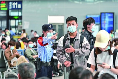 安徽芜湖站候车大厅,合肥铁路公安处芜湖站派出所青年警察在为旅客提供帮助。新华社发