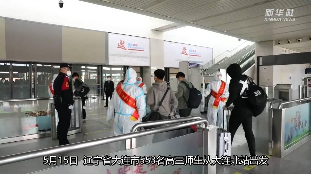 5月15日,辽宁省大连市553名高三师生从大连北站出发,乘坐“高考专列”前往沈阳,参加2022年高考体育类专业考试。这是有关部门为保障考生安全,以闭环管理方式定制开行的“高考专列”。