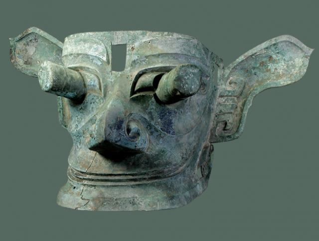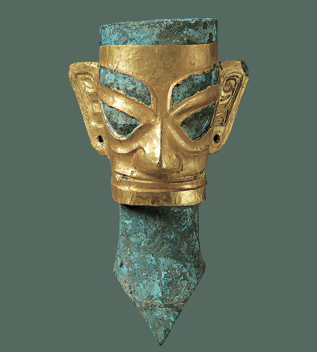金光熠熠,气度非凡——戴金面罩青铜人头像(现藏于三星堆博物馆)