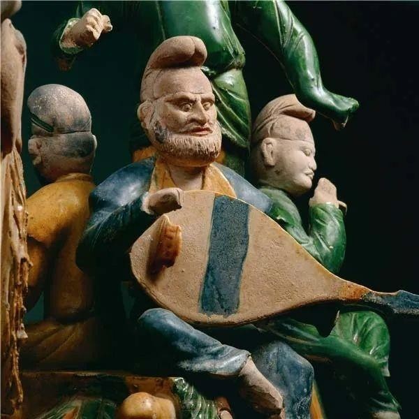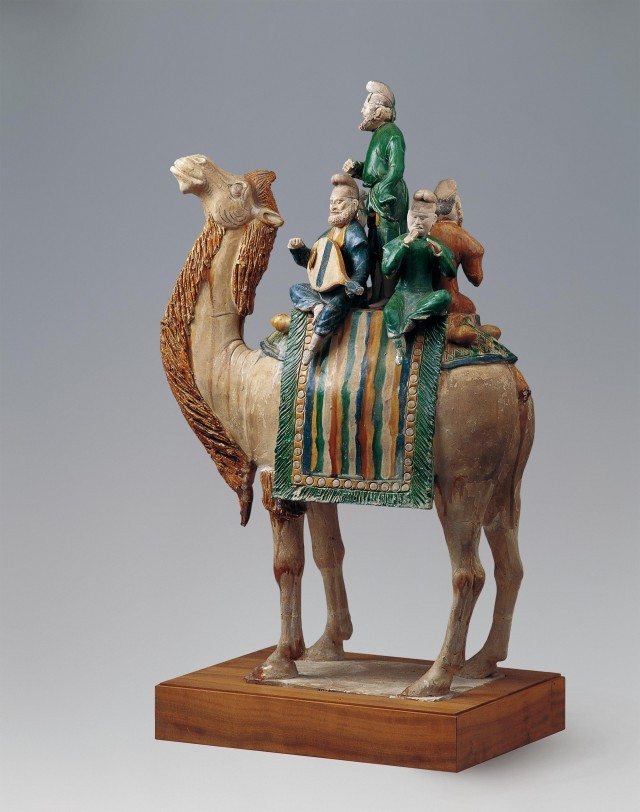 唐代陶骆驼载乐舞三彩俑,于1957年出土于陕西省西安市鲜于庭诲墓,现收藏于中国国家博物馆
