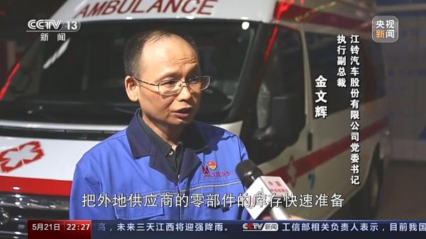 江铃汽车(14.370, -0.11, -0.76%)股份有限公司党委书记、执行副总裁 金文辉:我们也从江浙沪区域把外地供应商的零部件的库存快速准备,拉到南昌来。由于疫情的多点散发,需要更多的是相关区域的政府部门对车辆的放行。为了解决这个问题,我们江西省工信厅专门为江铃组织一个专班来协调我们物料的保供。