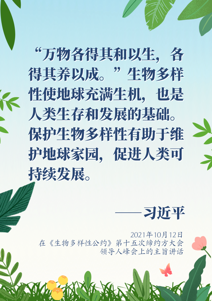 5月22日是国际生物多样性日,今年主题是“共建地球生命共同体”。近年来,习近平主席就加强生物多样性保护、共建清洁美丽世界作出一系列论述,阐释人与自然和谐共生的重要理念。