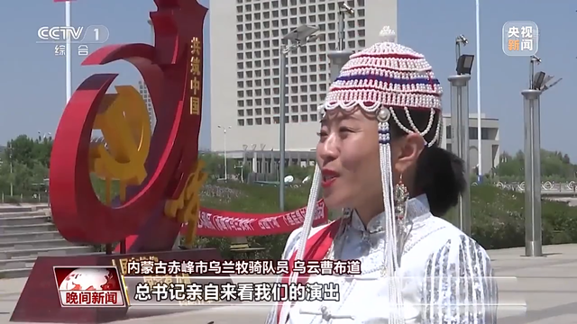 内蒙古赤峰市乌兰牧骑队员 乌云曹布道:总书记亲自来看我们演出,总书记说人民至上,人民需要艺术,艺术需要人民。我们乌兰牧骑队员要牢记总书记嘱托,深入到农村牧区为广大农牧民奉献精神食粮。
