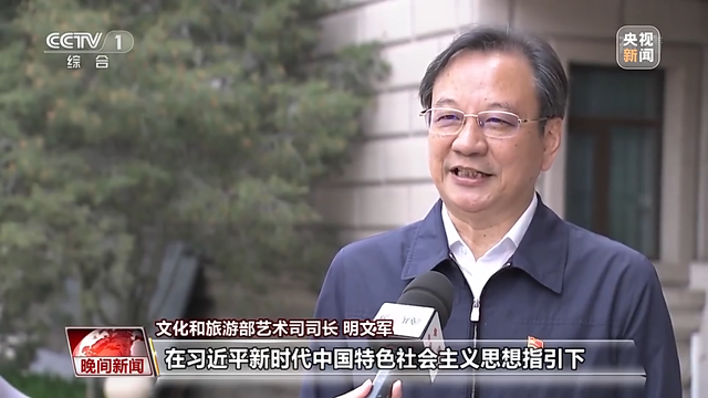 文化和旅游部艺术司司长 明文军:党的十八大以来,在习近平新时代中国特色社会主义思想指引下,广大文艺工作者进一步坚定文化自信,坚守中华文化立场,为人民创作、为时代放歌,努力攀登新时代文艺高峰,为复兴伟业凝聚起了强大的精神力量。