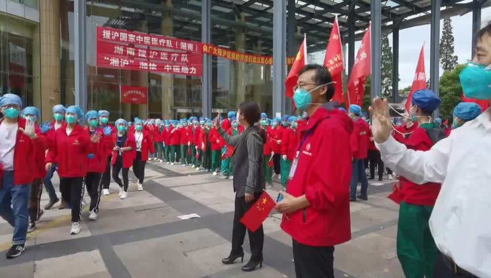 视频:湖南省援沪中医医疗队队员离开驻地返回