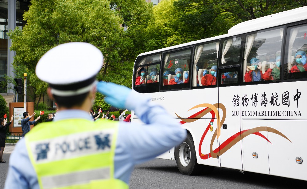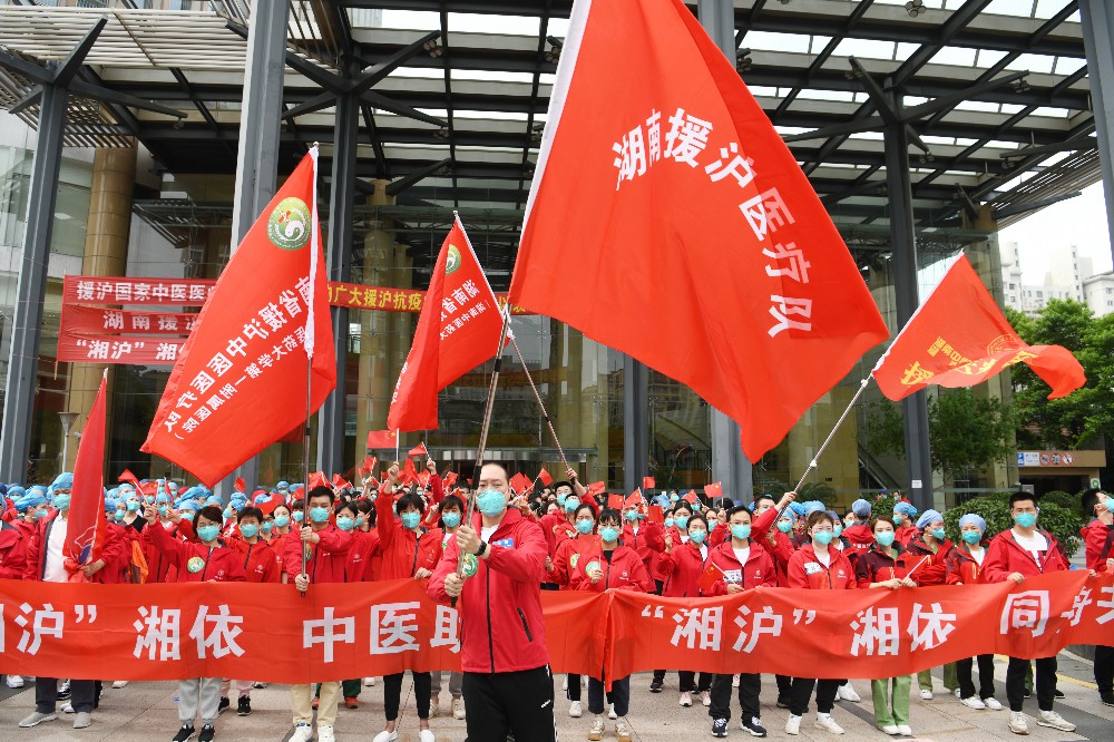 启程,致敬( 图片、视频均由湖南省援沪中医医疗队提供)