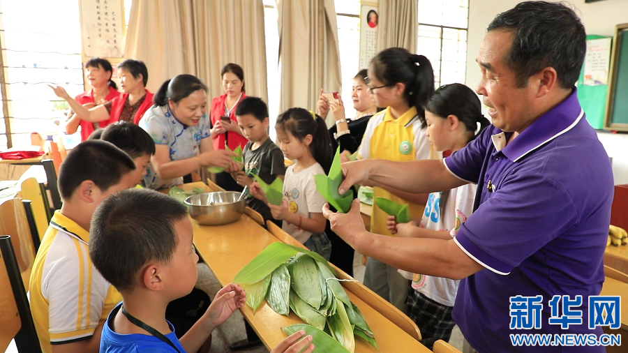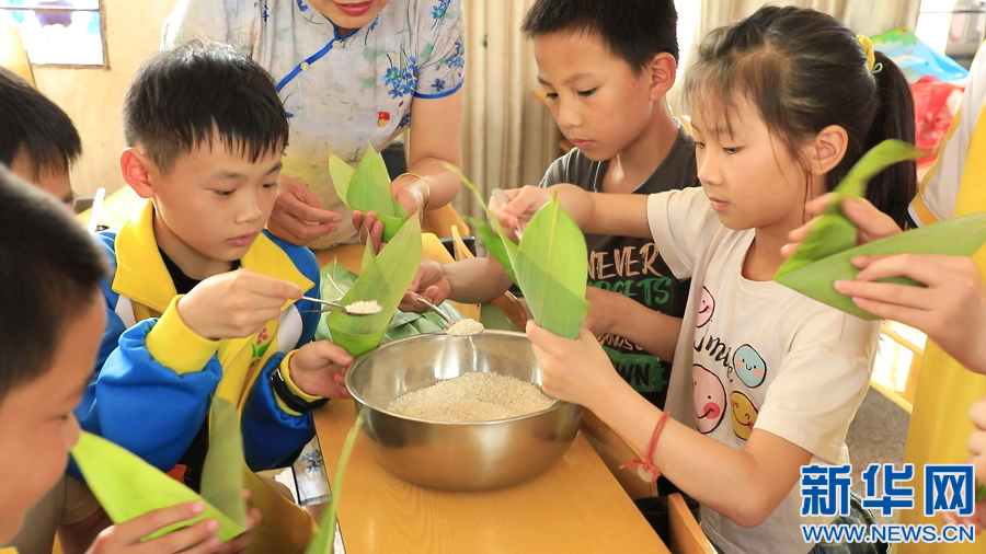 ▲在江西省大余县南安小学,老师和留守儿童一起包粽子,大家在欢声笑语中,度过一个温暖的“六一”儿童节。新华网发 严杰 摄