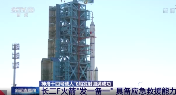航天科技集团一院、长征二号F运载火箭副总设计师 刘烽:我们是每一发(火箭)从北京出厂之后到这边竖立之后,进行了相关的一些测试,那么测试完之后就转为应急状态,我们接着就把我们原来应急待命状态(的火箭)转为正式发射的火箭,所以这两发是处于相互转换的一个角色。