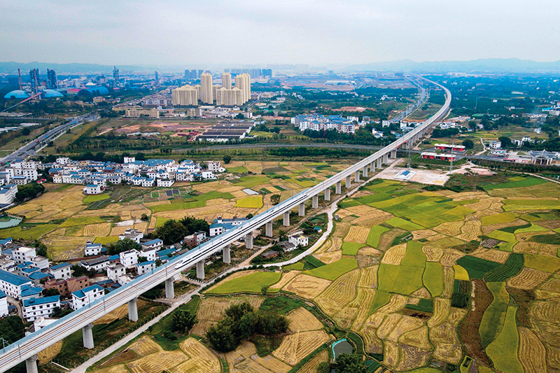 连通赣南革命老区与深圳经济特区的赣深高铁联调联试列车经过信丰特大桥(2021年10月14日摄) 张海根摄/本刊