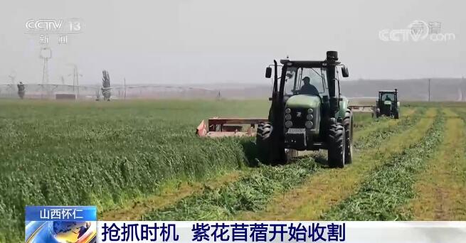 紫花苜蓿是高质量牧草,在山西北部广泛种植。今年,怀仁市集中连片种植了12000亩紫花苜蓿,当地抢抓时机,各类农机每天要在田间作业10小时以上,力争在苜蓿开花前全部收割完成,保证牧草营养质量。