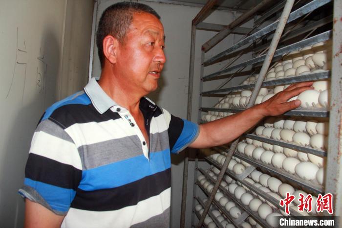 中新网乌鲁木齐6月7日电 (史玉江 谢国庆 王菊芳)“虽然现在灰鹅因疫情在当地销售受到影响,但因为之前建立了电商渠道,鹅蛋的销售市场非常好。”日前,在新疆生产建设兵团第十师一八二团一养殖场内的孵化室,52岁的强松江对记者表示。