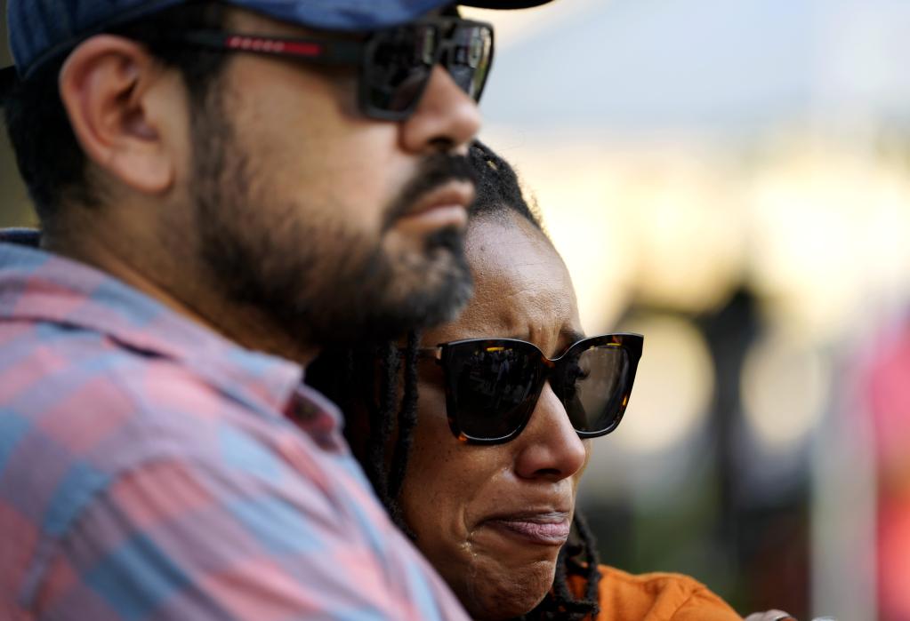 5月28日,在美国得克萨斯州南部尤瓦尔迪市的城市广场,市民哀悼罗布小学枪击事件遇害者。新华社记者吴晓凌摄
