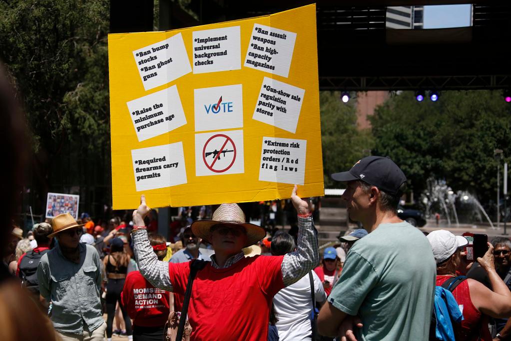 5月27日,在美国得克萨斯州休斯敦,一些民众举行集会抗议枪支暴力,呼吁控枪。新华社发(劳承跃摄)