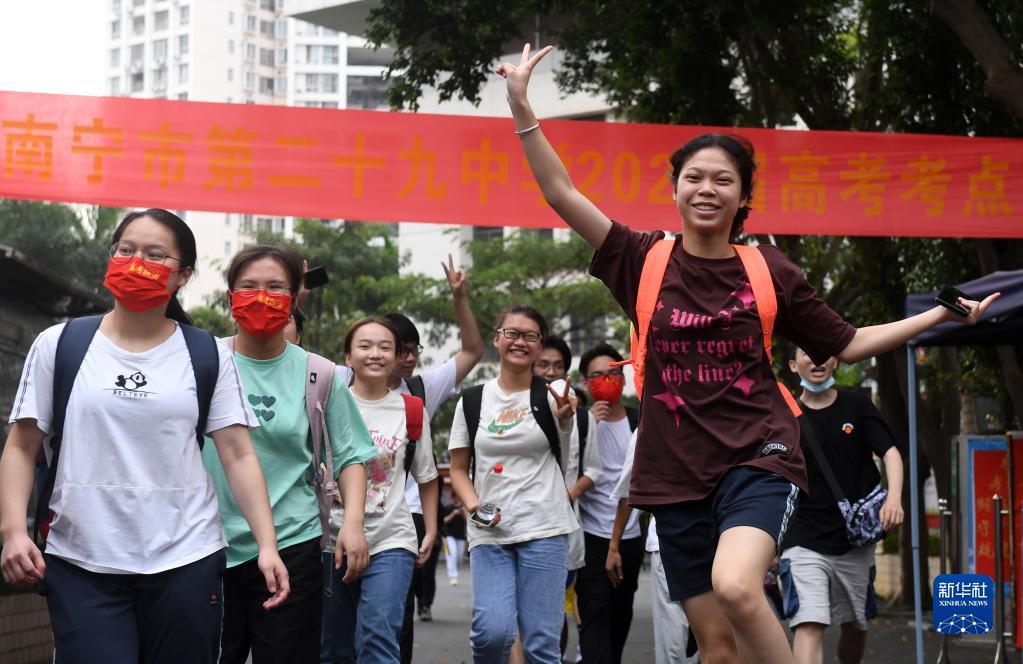 6月8日,在南宁市第二十九中学,考生结束考试后走出考点。