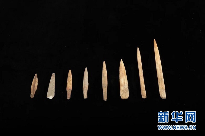 这是甘肃庆阳南佐遗址出土的涂有朱砂的骨镞。(图片由南佐遗址联合考古队提供)