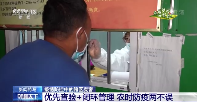 根据河南疫情防控规定,机手持有健康码绿码、行程码、48小时核酸检测阴性证明和跨区作业证,像孔德宝和老田这样因为核酸结果超过48小时场所码被赋上黄码的,服务站点的工作人员会采用“抗原加核酸”的检测方式。15分钟抗原检测出结果为阴性后,可由用户点对点闭环接到作业地点,并实行闭环方式进行作业。经过抗原检测,孔德宝和老田都是阴性。
