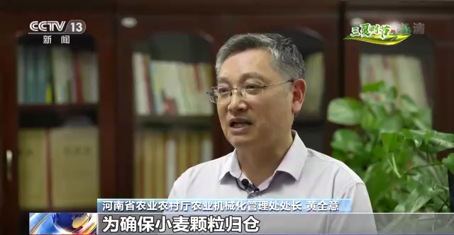河南省农业农村厅农业机械化管理处处长 黄全意:为确保小麦颗粒归仓,全省设立了816条跨区作业绿色通道,发放5万张跨区作业证,给跨区机手提供一些方便,管吃管住。