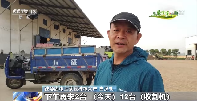 驻马店市上蔡县种粮大户 白汉礼:今天上午10台车,下午再来2台,12台车,明天再增加2台。