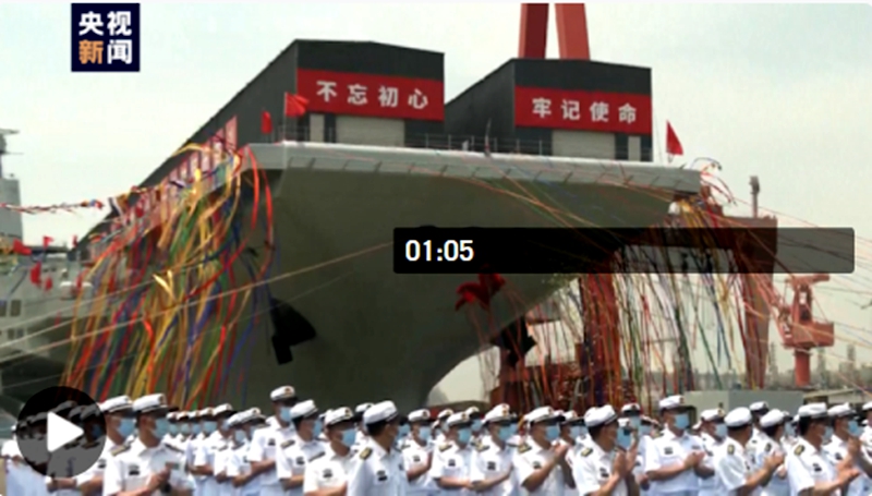 我国第三艘航空母舰下水命名仪式17日上午在中国船舶集团有限公司江南造船厂举行。