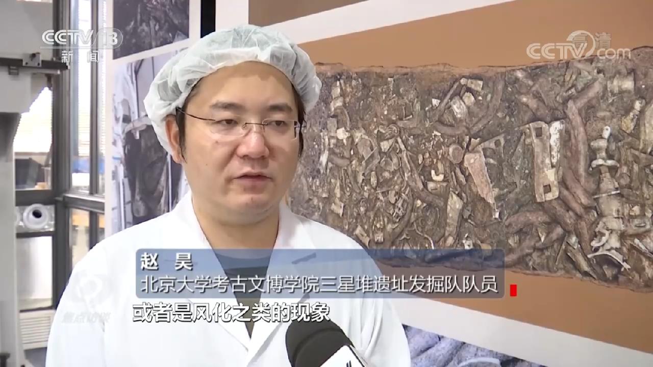 北京大学考古文博学院三星堆遗址发掘队队员赵昊说:“在这次的发掘过程中,重点使用了比较轻便的高分子材料。这样就能将这些非常酥软的象牙很快、很轻便地提取到坑上来。”