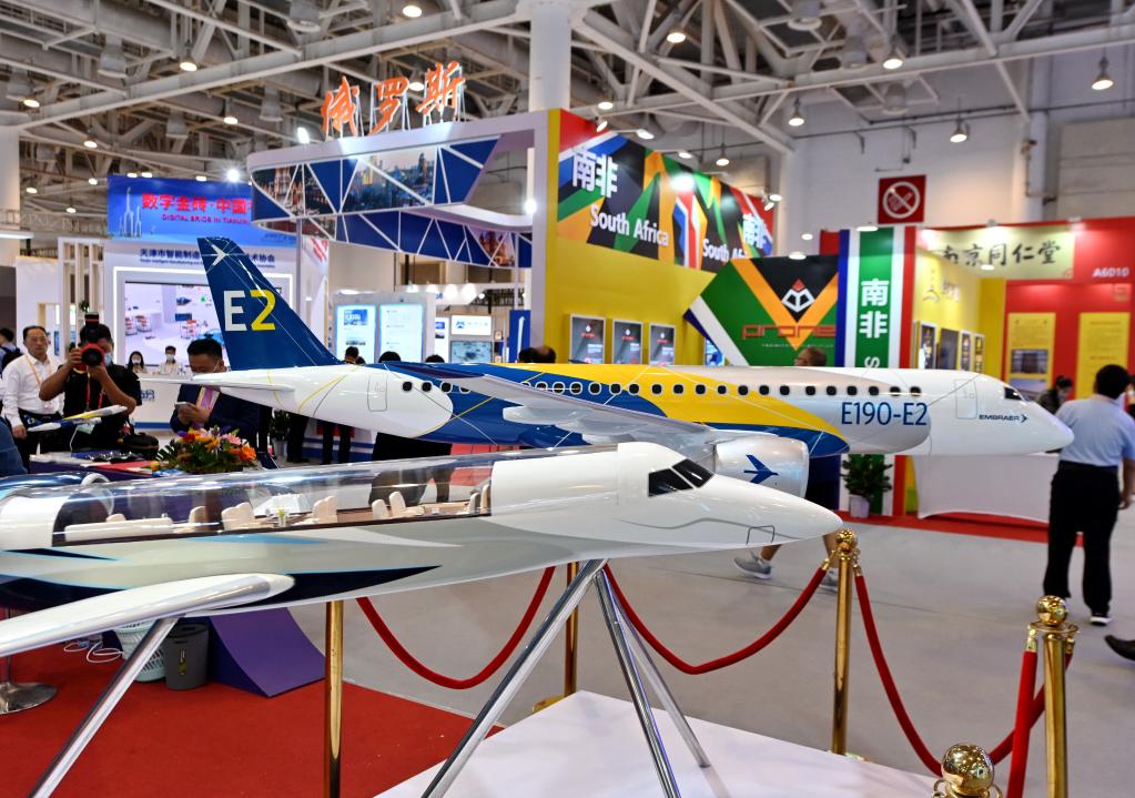 2021年9月8日,2021金砖国家新工业革命展在厦门开幕,这是在展览上拍摄的参展飞机模型。(新华社记者林善传摄)