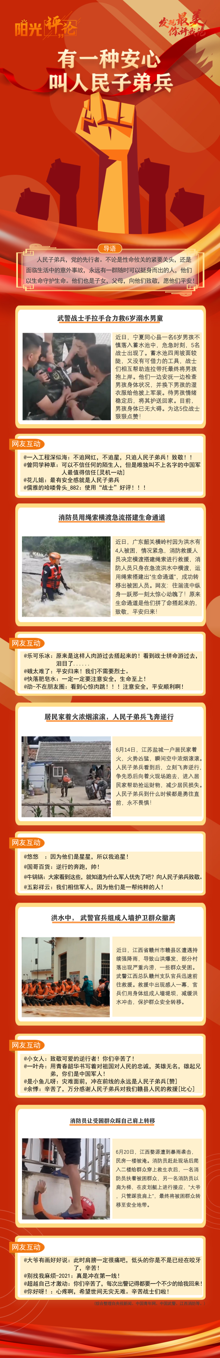 人民子弟兵,党的先行者。不论是性命攸关的紧要关头,还是面临生活中的意外事故,永远有一群随时可以挺身而出的人,他们以生命守护生命。他们也是子女,父母,向他们致敬,愿他们平安!