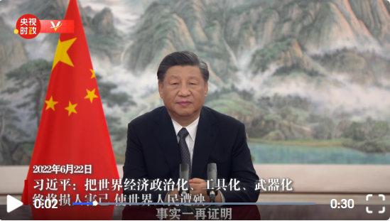 独家视频丨习近平:把世界经济政治化、工具化、武器化 终将损人害己 使世界人民遭殃