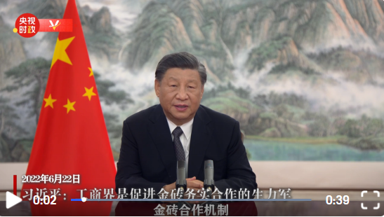 6月22日晚,国家主席习近平以视频方式出席金砖国家工商论坛开幕式并发表题为《把握时代潮流 缔造光明未来》的主旨演讲。