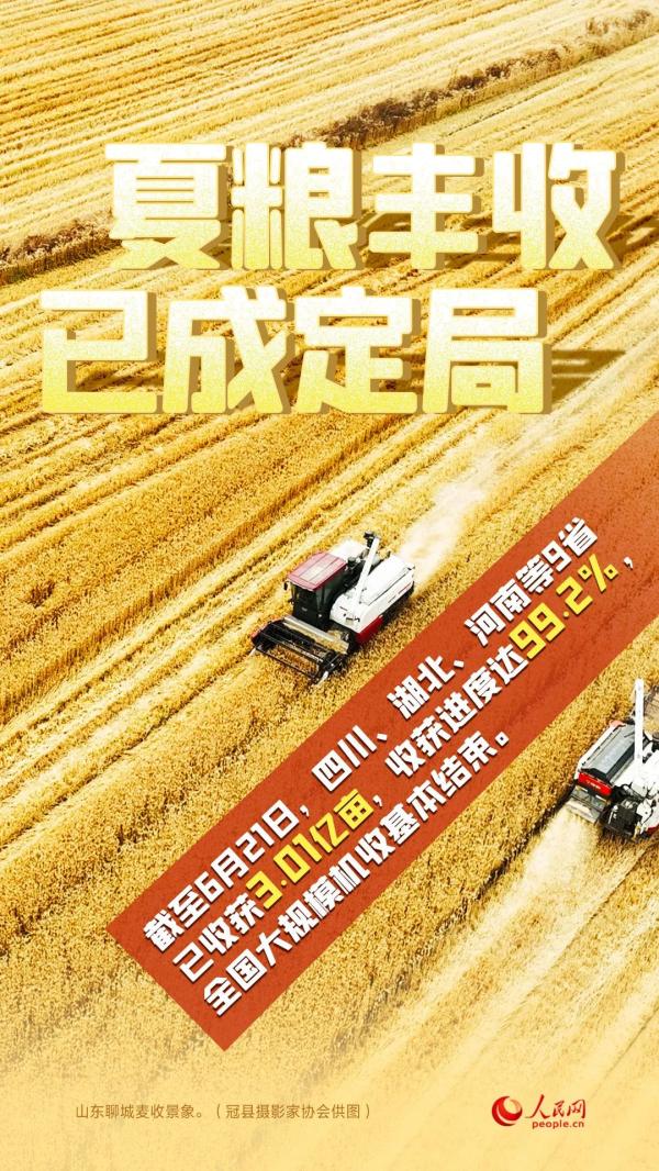 据农业农村部数据显示,截至6月21日,四川、湖北、河南、安徽、江苏、陕西、山东、河北、山西等9省已收获小麦3.01亿亩,收获进度达99.2%,全国大规模机收基本结束。
