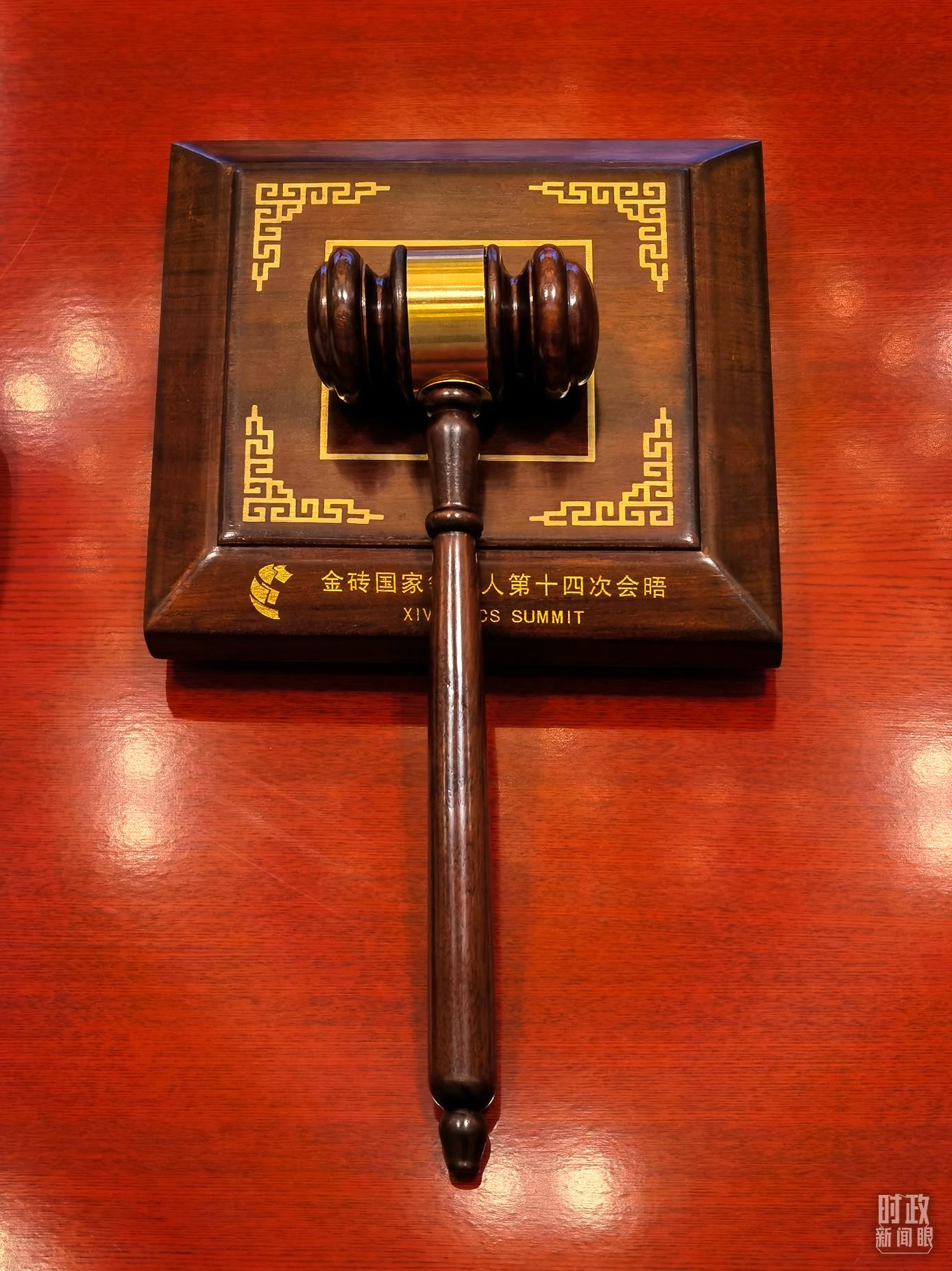 △这是当天的对话会发表主席声明时,习近平所敲的木槌。(总台央视记者石丞拍摄)