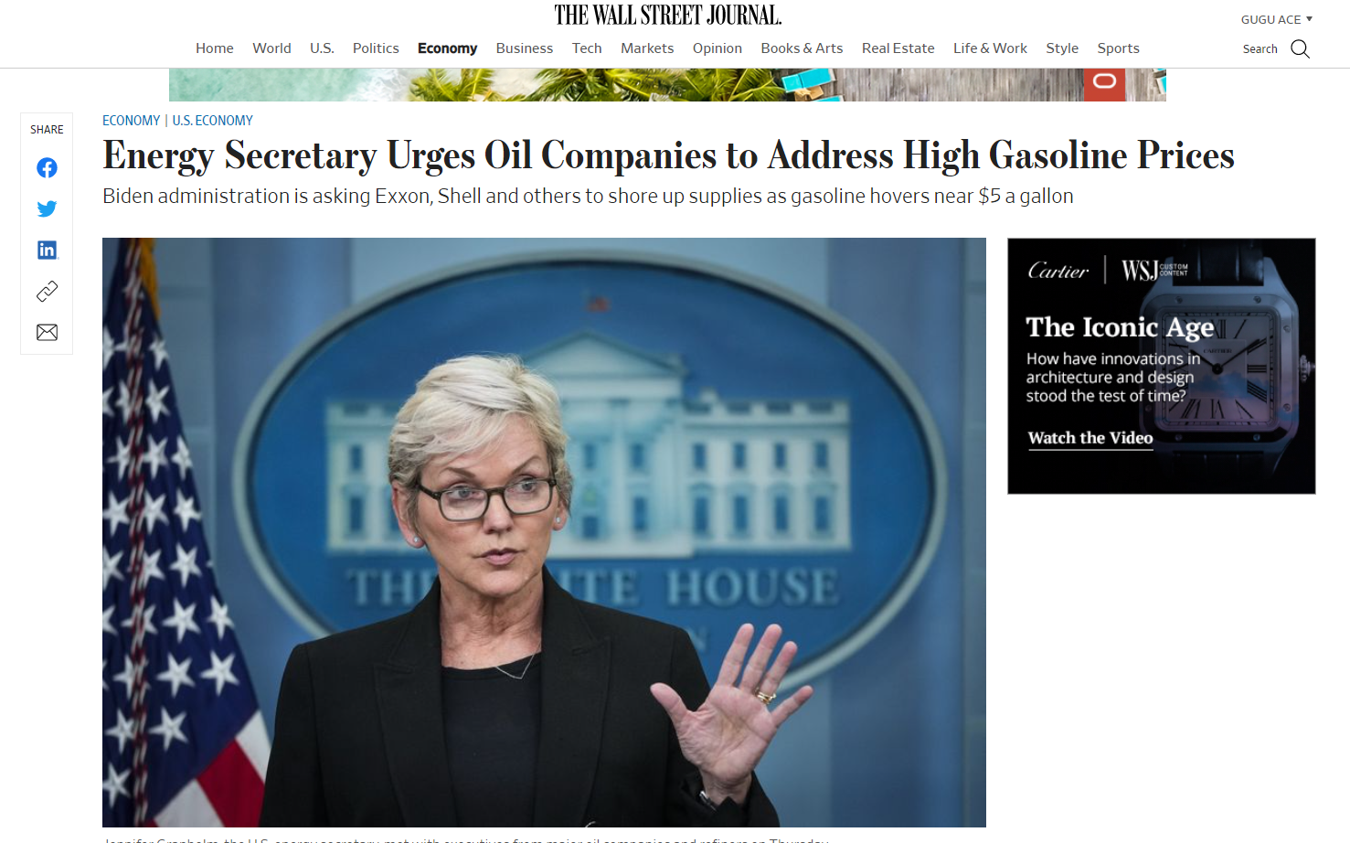 △《华尔街日报》报道,美国能源部长敦促石油公司解决高油价问题