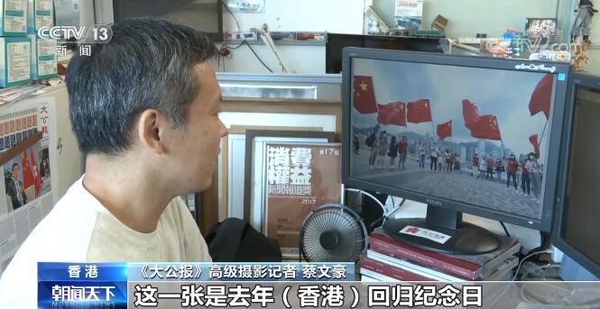 《大公报》高级摄影记者 蔡文豪:我是蔡文豪,《大公报》的摄影记者,在这里工作21年。我父母从小教导我们,身为中国人一定要爱国,为国家争一口气。1997(年)我刚毕业,还不是一个摄影记者,但是我感觉香港不一样了。我感觉,香港就是一个新生的小孩,我拿着相机出去拍摄,到处感受这个新生的城市。所以毕业后我要找一份跟国家有关联的工作,加入《大公报》是必然的选择。在这里我见识到什么是文章报国,并重新认识祖国。