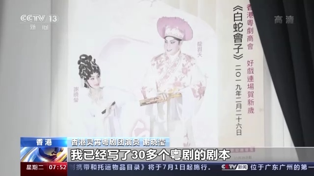 香港灵霄粤剧团演员 谢晓莹:我觉得粤剧的发展除了我们自己的努力,还需要去取经、去学习。10年的时间里,我去了北京、上海、浙江、江苏,还有很多内地的城市,去学习戏曲的表演。整个祖国山河景点对我来说,都是我创作的灵感。我已经写了30多个粤剧的剧本,我觉得很幸福。