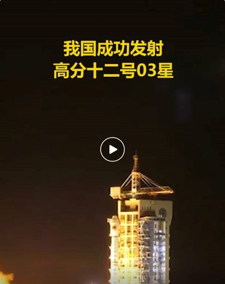 2022年6月27日23时46分,我国在酒泉卫星发射中心使用长征四号丙运载火箭,成功将高分十二号03星发射升空,卫星顺利进入预定轨道,发射任务获得圆满成功。该卫星主要用于国土普查、城市规划、土地确权、路网设计、农作物估产和防灾减灾等领域。