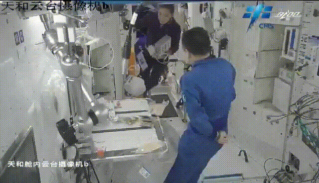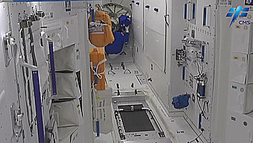 2021年10月17日9时50分,神舟十三号航天员乘组成功开启货物舱舱门,顺利进入天舟三号货运飞船,进行物资转运等相关工作。