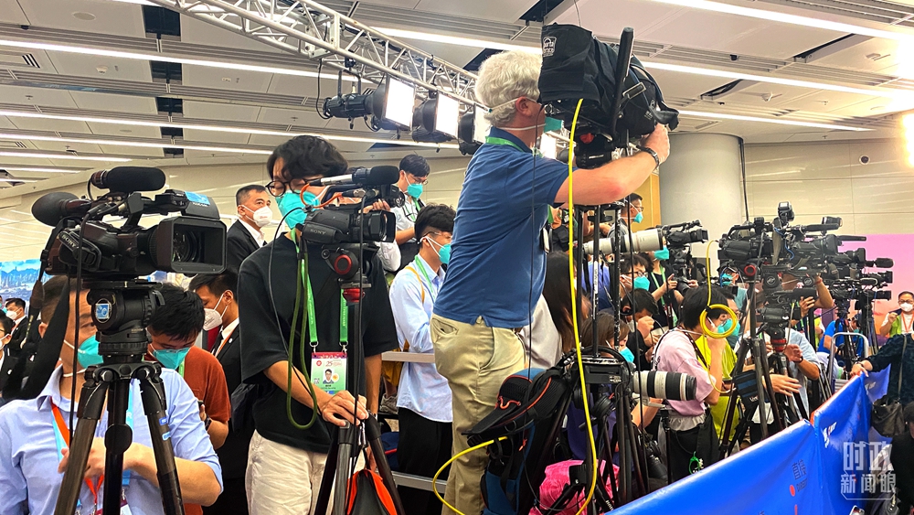 现场采访的媒体记者。(总台央视记者李辉拍摄)