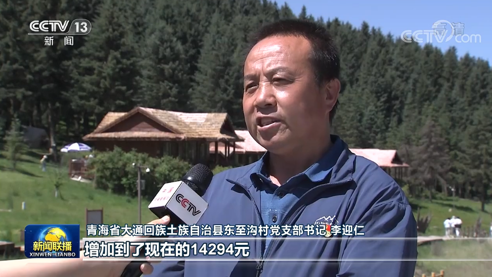 青海省大通回族土族自治县东至沟村党支部书记 李迎仁:我们东至沟村的村集体经济从原来的零突破到了现在的130多万了。我们的农户(年)人均收入提高了,从原来的2000多元,增加到了现在的14294元。
