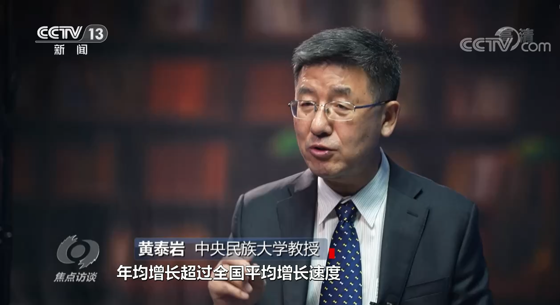 黄泰岩说:“发展速度快是边疆地区这些年当中一个突出的特色,年均增长超过全国平均增长速度,人均GDP也超过了全国平均增长速度,标志着边疆人民的生活水平和过去大不一样了。”