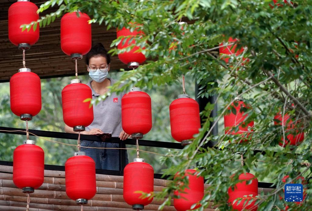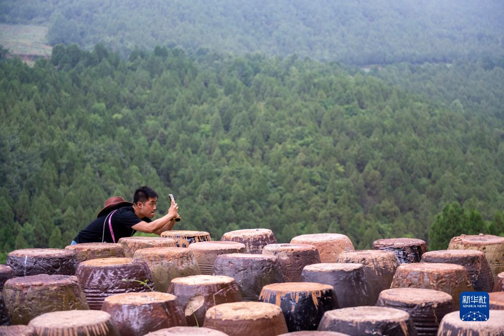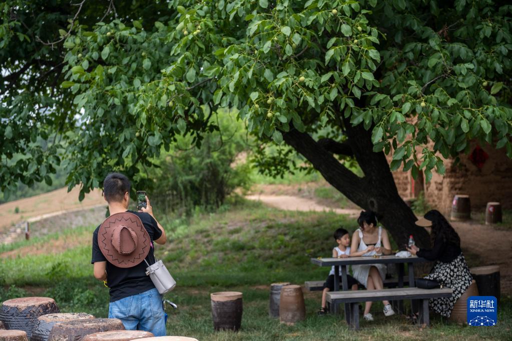 7月12日,游客在“洛阳三彩陶艺村”游览拍照。新华社记者 徐嘉懿 摄