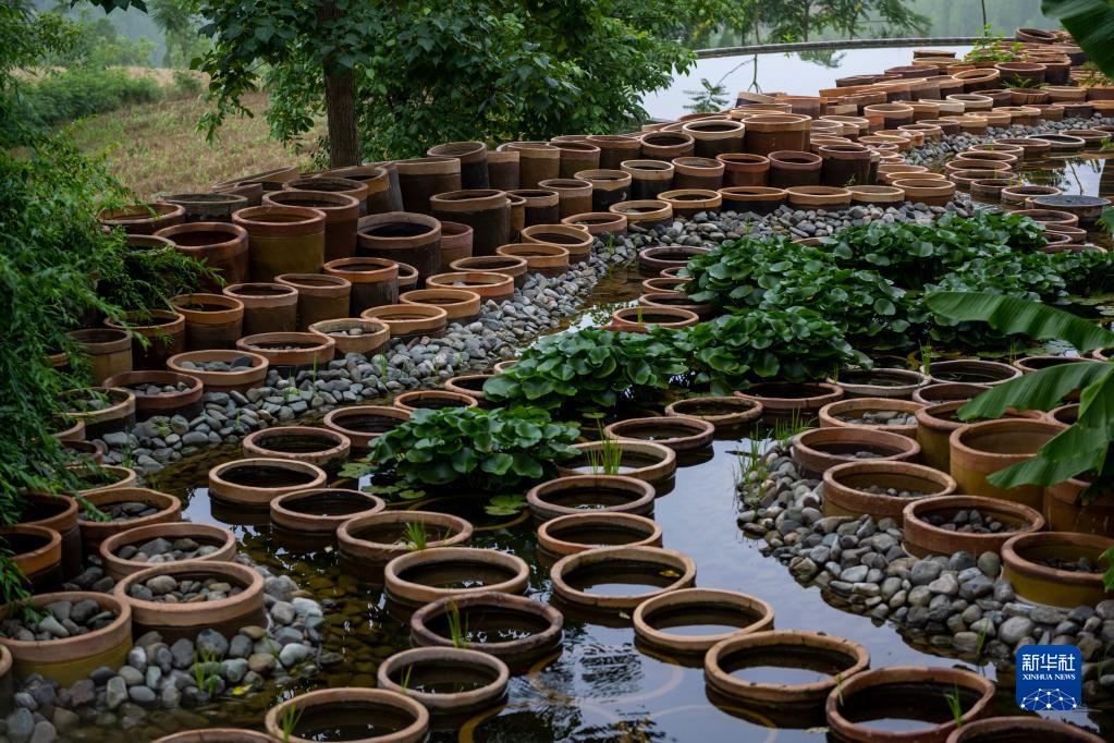 这是7月13日在“洛阳三彩陶艺村”拍摄的一处陶艺装置作品。新华社记者 徐嘉懿 摄